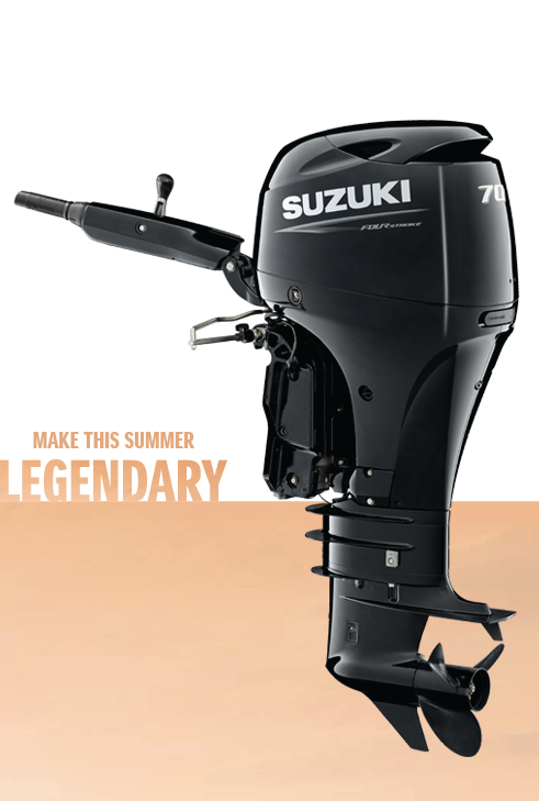 Now available on selected DF70A Tiller Outboard Models with the Make this Summer Legendary offer.